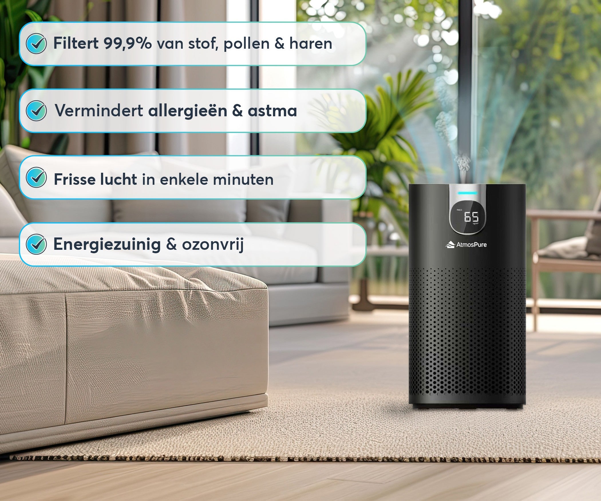 Merk je dat de lucht in huis vol stof, pollen, geurtjes of allergenen zit? Word je sneller benauwd of slaap je minder fris? Dan is de AtmosPure CleanAir luchtreiniger precies wat je nodig hebt voor een schoner, gezonder binnenklimaat.