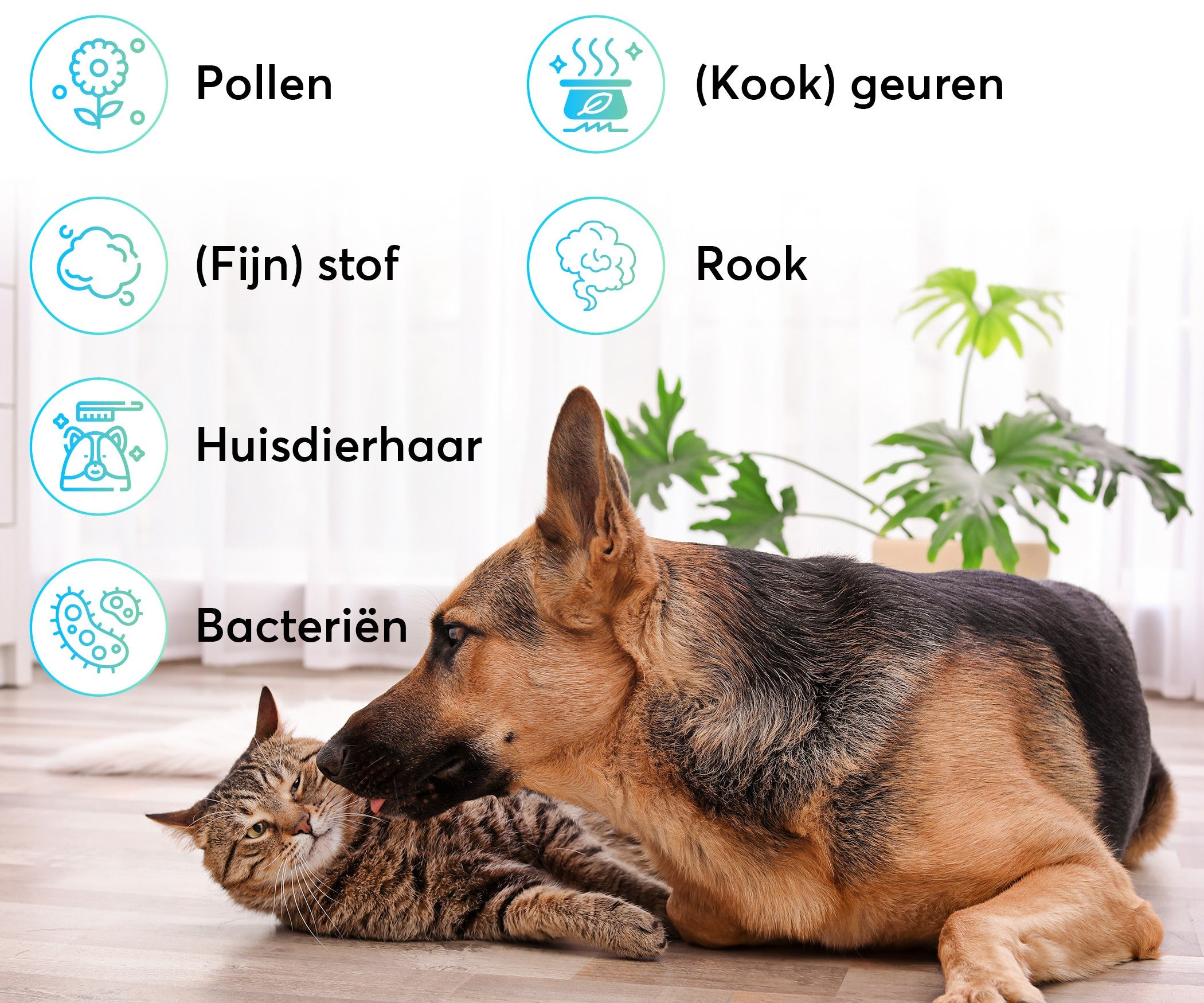 Haalt zwevend stof en fijnstofdeeltjes uit de lucht voor een frissere leefruimte.